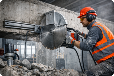 Execução de cortes precisos em concreto,